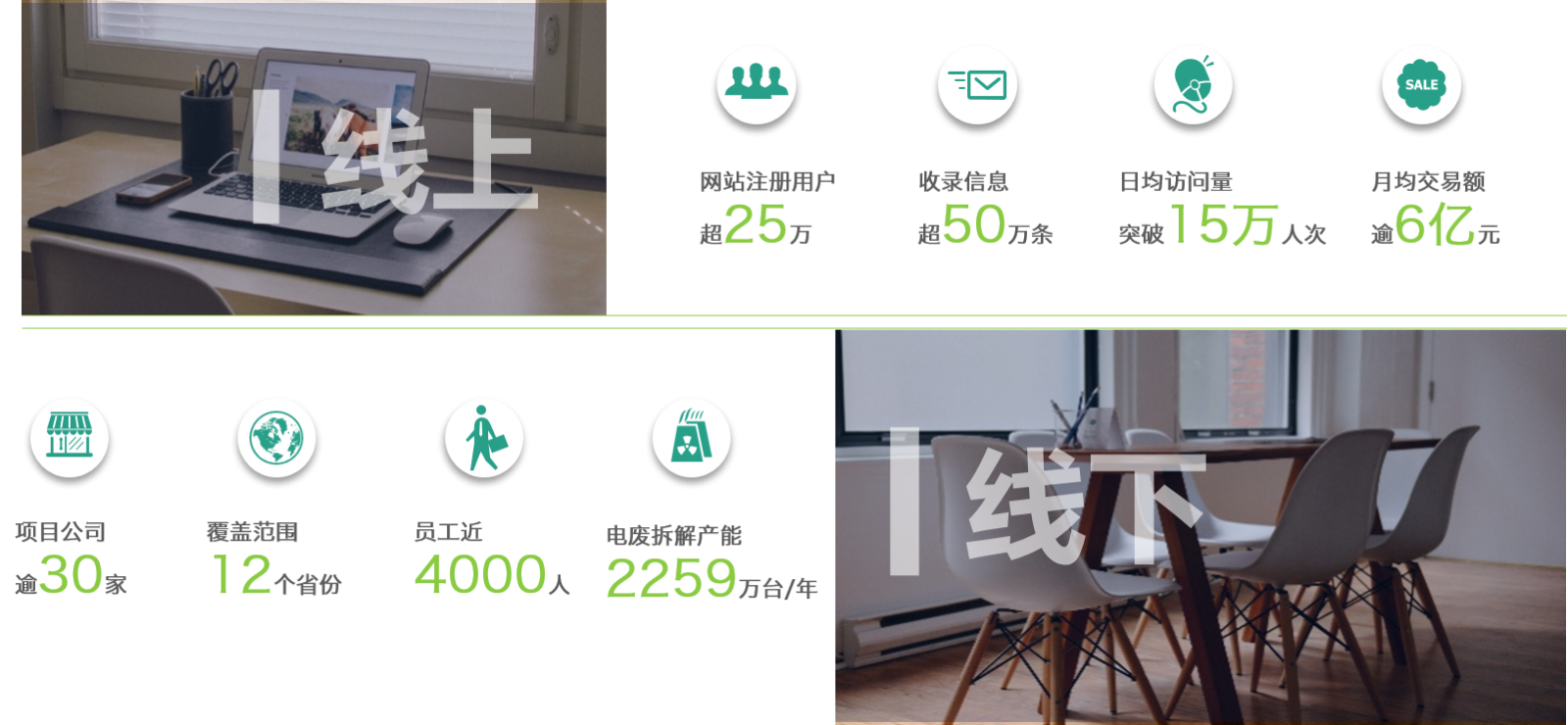 以再生資源項目的投資與運營為主體,以線下多元實體產業和線上易再生O2O交易平臺為兩翼,在六大領域謀篇布局。